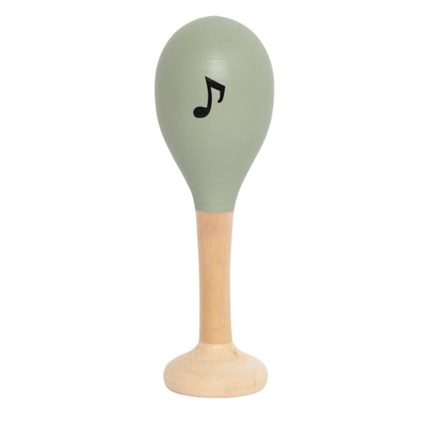 Duży drewniany instrument - marakas, grzechotka idealny, by wprowadzić malucha w niesamowity świat dźwięków. Zabawka rozwija zmysł słuchu oraz poczucie rytmu, przeznaczona dla najmłodszych dzieci. Zapakowana w pudełeczko, pomalowana ekologiczną farbą na kolor szałwiowy, posiada motyw nuty- doskonała na upominek.