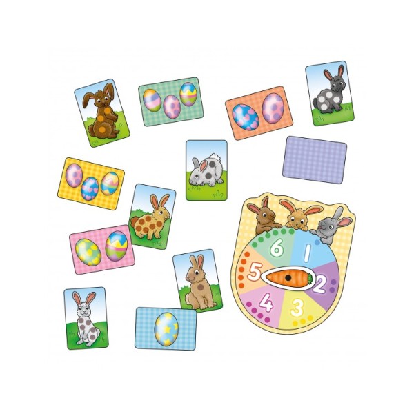 Zabawna gra polegająca na liczeniu, o tematyce wielkanocnej, która jest idealną, bezcukrową alternatywą dla jajek wielkanocnych i którą można cieszyć się przez cały rok!