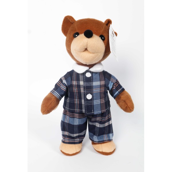 Pluszowy Miś Uszatek tym razem jest gotowy do snu i przebrał się w piękną niebieską pidżamkę.